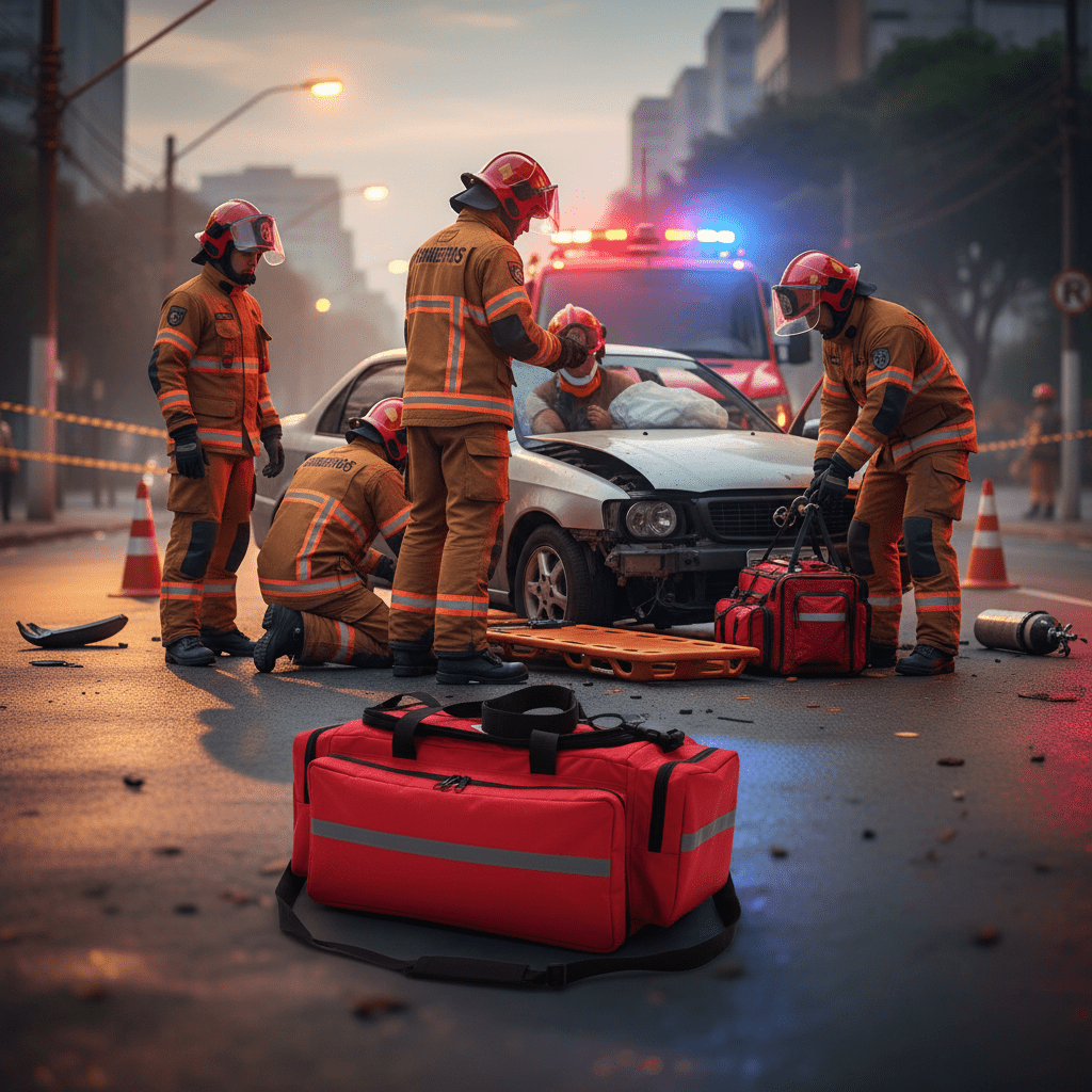 Você perde tempo revirando bolsos escuros procurando materiais na frente do paciente? A desorganização passa insegurança e grita "amadorismo" no momento crucial do atendimento.